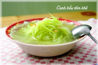 - Tôm khô ngâm với nước nóng cho mềm, nhớ giữ lại nước ngâm vì nó ngọt. Khi tôm mềm thì giã cho nhuyễn, cho vào nồi đun sôi 1 lúc cho vị ngọt của tôm ra nước. Sau đó cho bầu và gia vị hoặc bột nêm vào. Bầu làm như trên rất nhanh chín, đến khi sôi bùng lên là tắt bếp. Nêm cho vừa độ mặn nhạt là ăn thật ngon rồi đó.